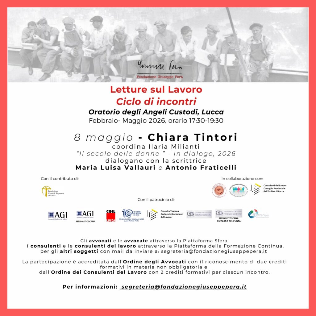 La Fondazione Giuseppe Pera è lieta di invitarvi al terzo incontro del ciclo “Letture sul lavoro” che si terrà a Lucca nello splendido Oratorio degli Angeli Custodi.