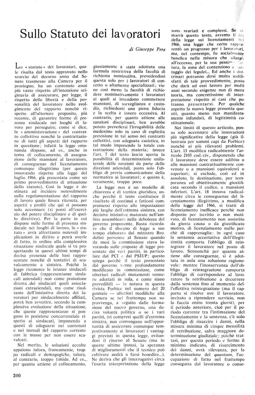 La Fondazione Giuseppe Pera ricorda i 50 anni dello Statuto dei lavoratori